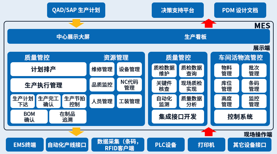MES系统是一套面向制造企业车间执行层的生产信息化管理系统。MES可以为企业提供包括制造数据管理、计划排程管理、生产调度管理、库存管理、质量管理、人力资源管理、工作中心、设备管理、工具工装管理、采购管理、成本管理、项目看板管理、生产过程控制、底层数据集成分析、上层数据集成分解等管理模块,为企业打造一个扎实、可靠、全面、可行的制造协同管理平台。